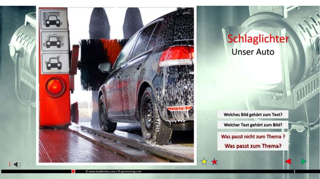 Die App beinhaltet 80 Fragen zum Thema "Auto" die sich auf die vier, grundsätzlichen Fragestellungen verteilen 1) Welche Abbildung passt zum Text?, 2) Welcher Text passt zur Abbildung?, 3) Welche Abbildung passt zum Thema? und 4) Welche Abbildung passt nicht zum Thema? Der Schwierigkeitsgrad fällt bei 3) und 4) deutlich ab, so daß die Aufgabenstellungen innerhalb der Therapiesitzung sehr gut auf die Leistungsfähigkeit der Patienten angepaßt werden können.