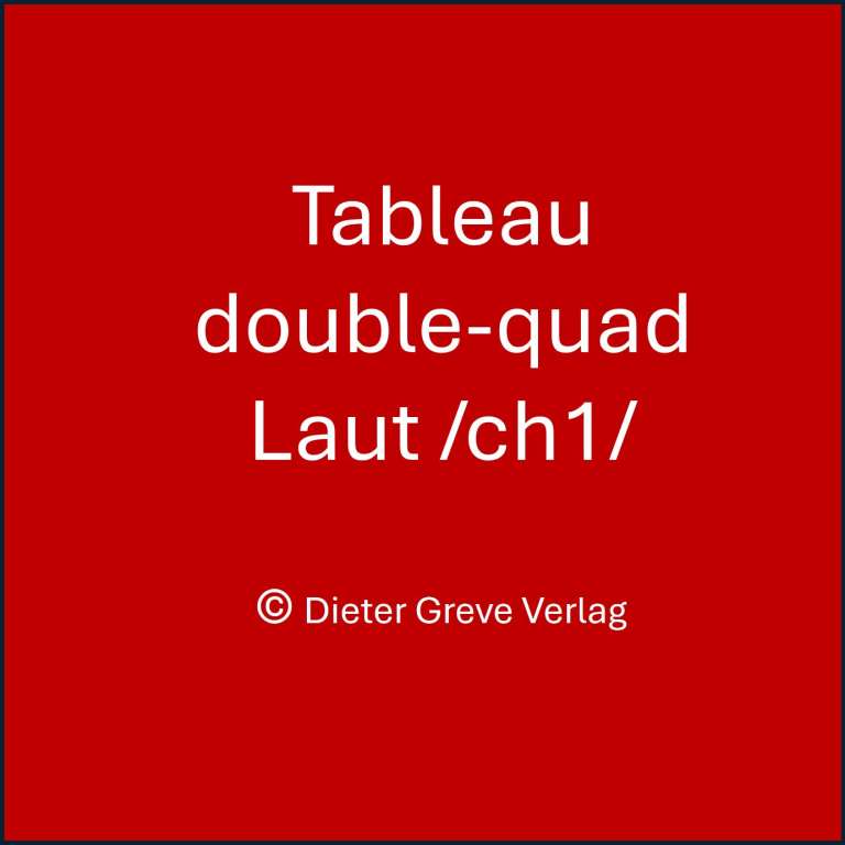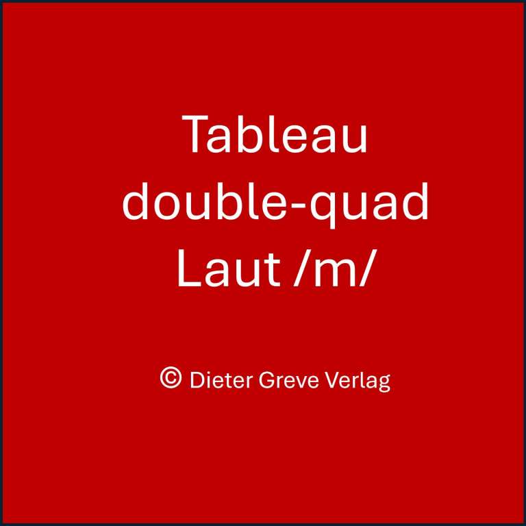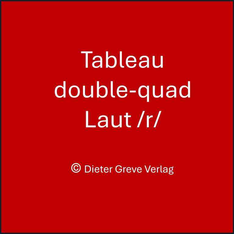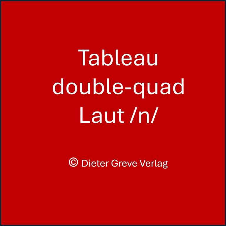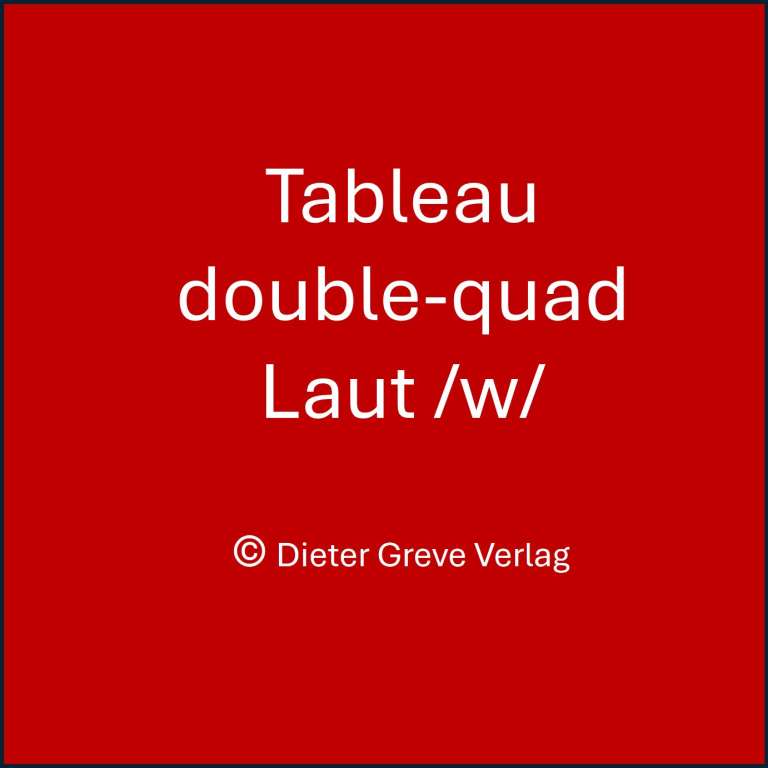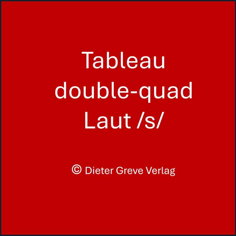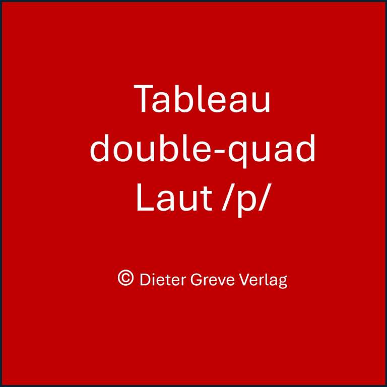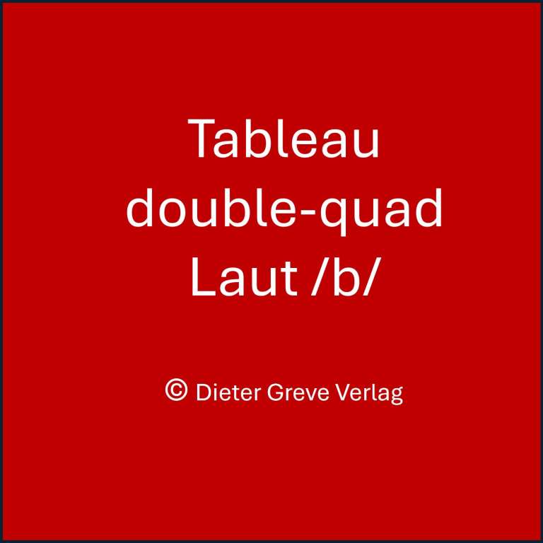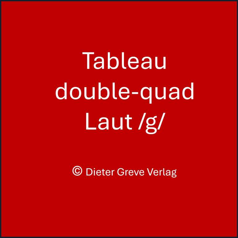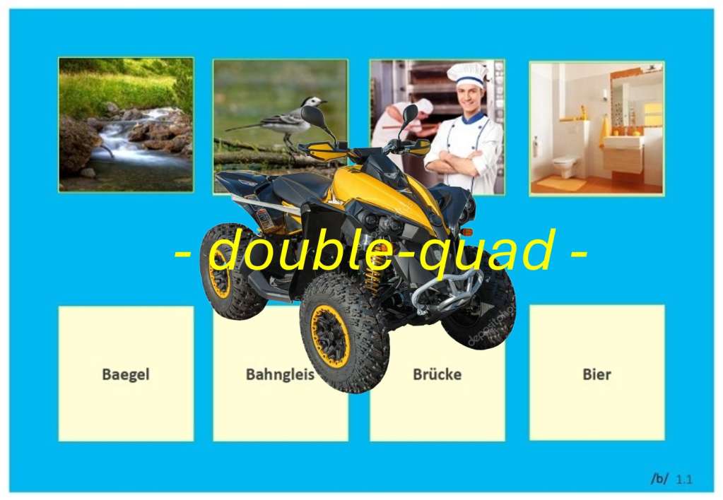 ""double-quad " präsentiert 4 lautspezifische Bilder und Worte auf einem Spiel-Tableau. Zu den jeweiligen Abbildungen der Tableaus gibt es spiegelverkehrte Laut-Legekarten. Die gemeinsame Anordnung von Wort und Bild auf einem Tableau erzwingt den wechselseitigen Einsatz der Bild- und Wort-Legekarten innerhalb einer Spielfrequenz. Damit werden die, für die Wort- und Bild-Verarbeitung zuständigen Areale des Gehirns, im vorderen (Frontallappen) und hinteren (visueller Cortex) Bereich gleichermaßen aktiviert und angesprochen .