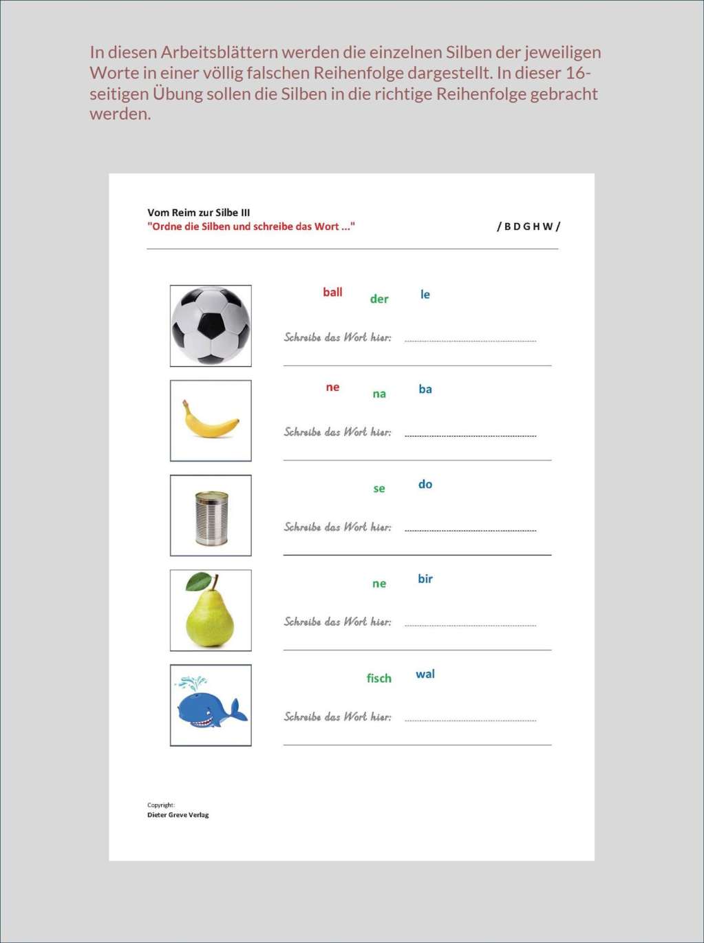 In diesen Arbeitsblättern werden die einzelnen Silben der jeweiligen Worte in einer völlig falschen Reihenfolge dargestellt. In dieser 16-seitigen Übung sollen die Silben in die richtige Reihenfolge gebracht werden.